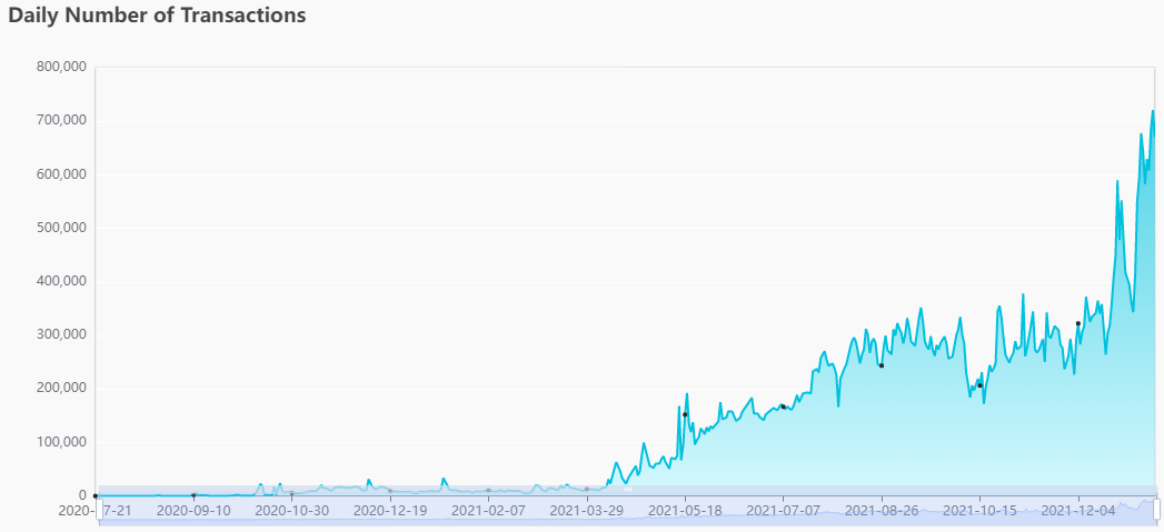 As a result of the increased activity brought by the increased adoption of projects on NEAR and the migration of tokens from Ethereum, the daily transaction count on the NEAR network established a new record high of 721,061 transactions on Jan. 11.