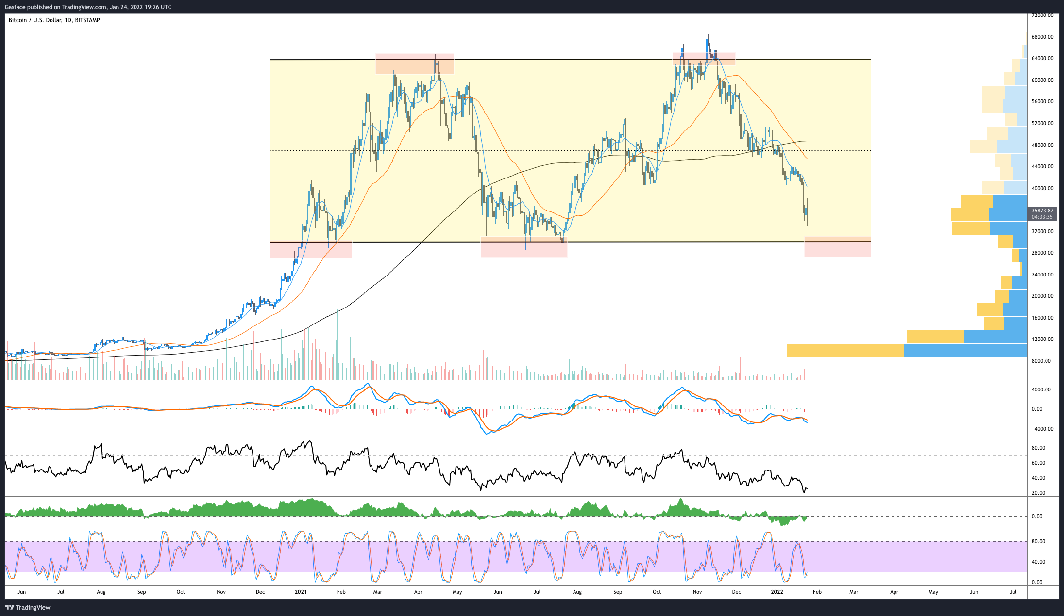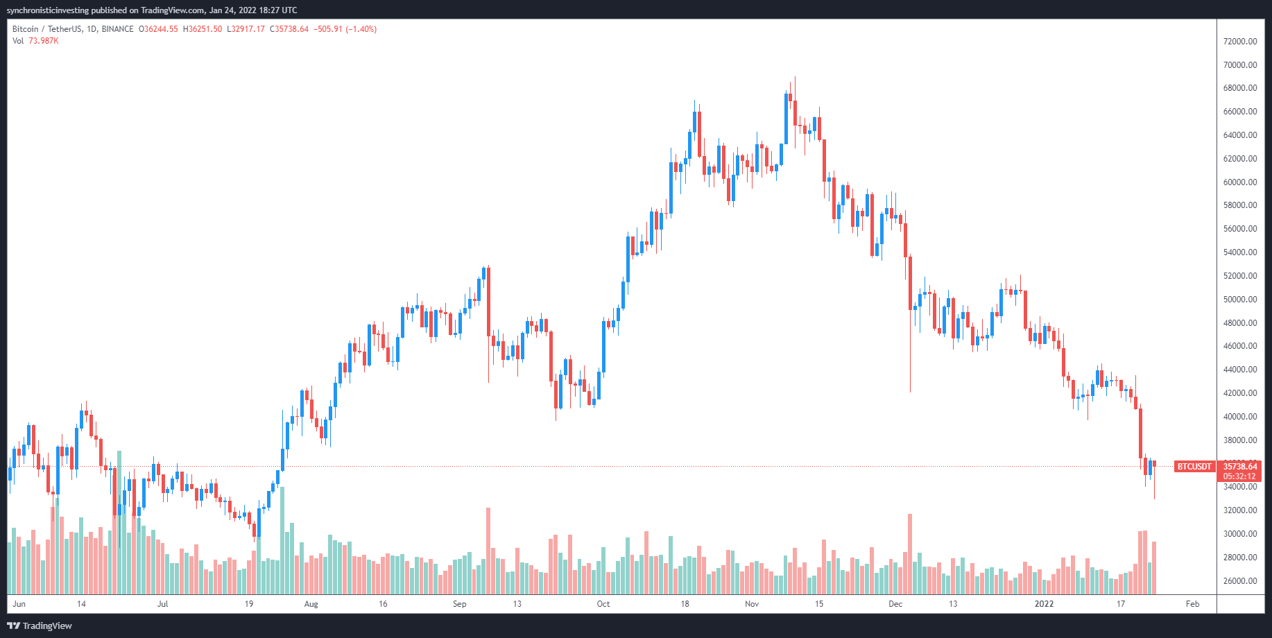 Bears remain in full control of the cryptocurrency market on Jan. 24 and to the shock of many, they managed to pound the price of Bitcoin (BTC) to a multi-month low at $32,967 during early trading hours. This downside move filled a CME futures gap that was left over from July 2021.