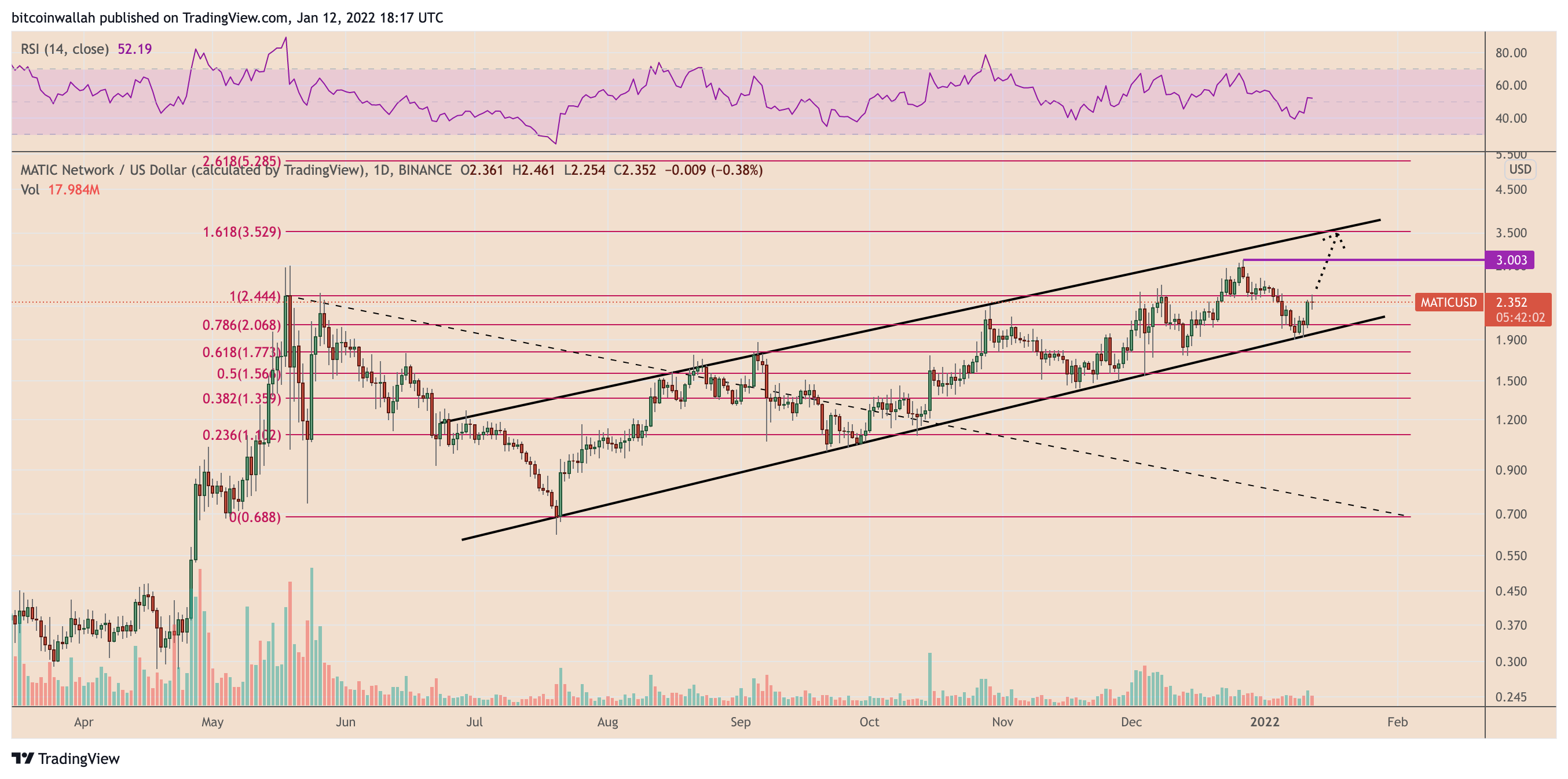MATIC/USD daily price chart featuring ascending channel pattern. Source: TradingView
