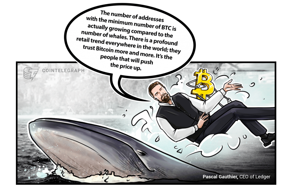 “The number of addresses with the minimum number of Bitcoin is actually growing compared to the number of whales. I think you get a profound retail trend everywhere in the world; people onboarding Bitcoin, they trust Bitcoin more and more. It’s really the people that will push the price up.”