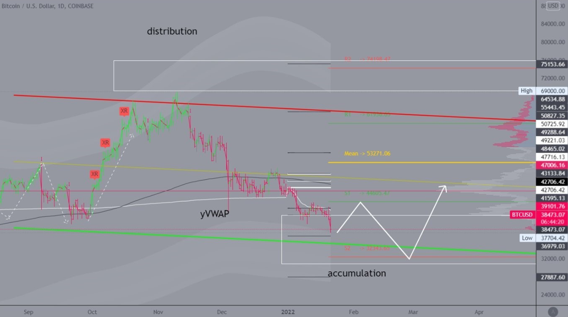 “Technically, the $38,000 support area is what separates BTC from entering the $28,000-$38,000 consolidation range. Bitcoin last consolidated in said range in Q1 and Q2 of 2021.”