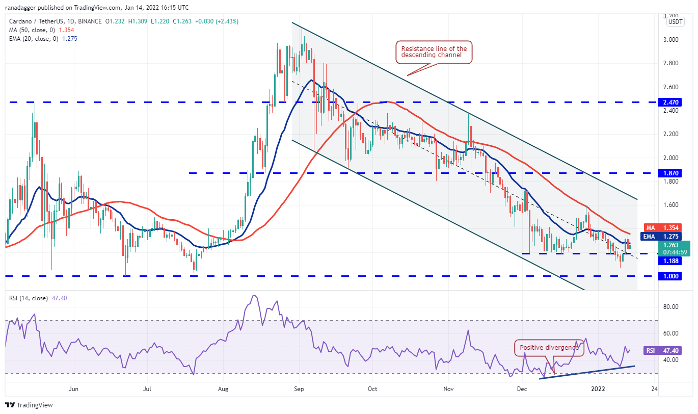 Cardano (ADA) turned down from the 50-day SMA ($1.35) on Jan. 13 but the bulls did not allow the price to break below the $1.18 support. This suggests that bulls are buying on dips.
