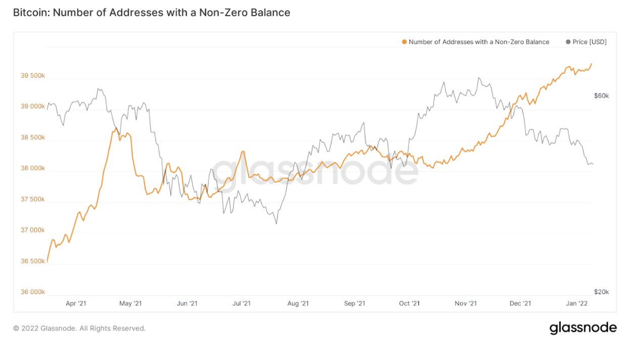 Recent data from on-chain market intelligence provider Glassnode supports the claim. The number of BTC addresses with a non-zero balance is at all-time highs, topping out just short of 40 million.