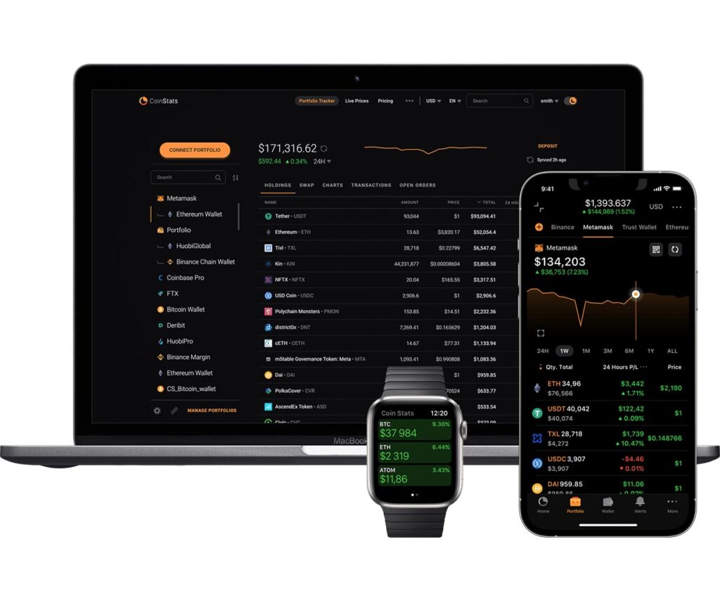 CoinStats can be used as a mobile app, extensions, widgets, Mac App, Apple TV, Apple Watch, iPod app, etc.