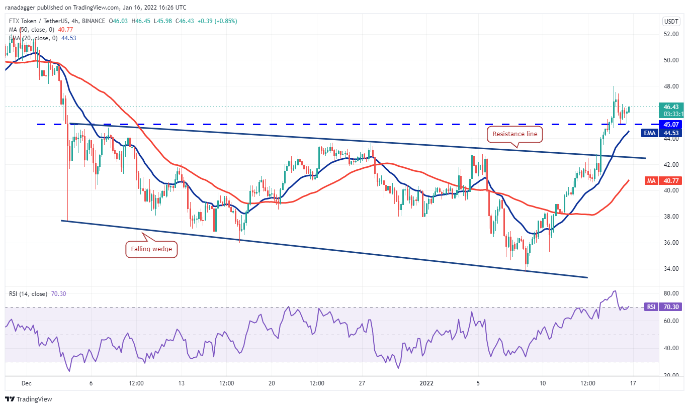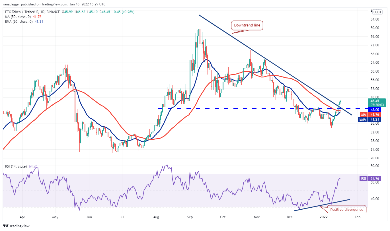 FTX Token (FTT) has been in a strong corrective phase for the past several weeks. The bulls pushed the price above the downtrend line on Jan. 14, signaling a possible change in trend.