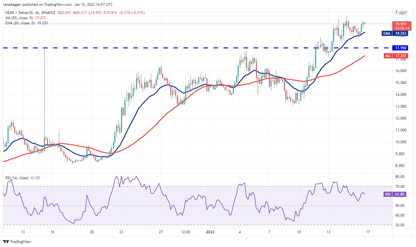NEAR Protocol’s NEAR token is in a strong uptrend. The price broke above the previous all-time high at $17.95 on Jan. 11, signaling the resumption of the up-move. The bears pulled the price back below $17.95 on Jan. 12 but the bulls bought this dip and reclaimed the level on Jan. 13.